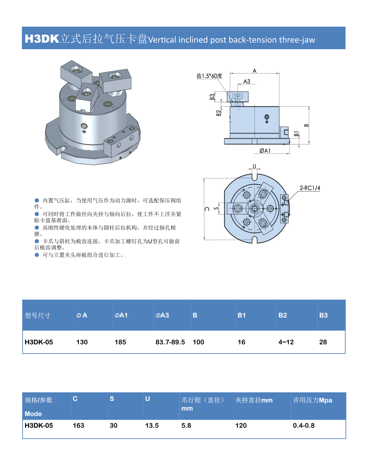 H3DK立式后拉气压卡盘