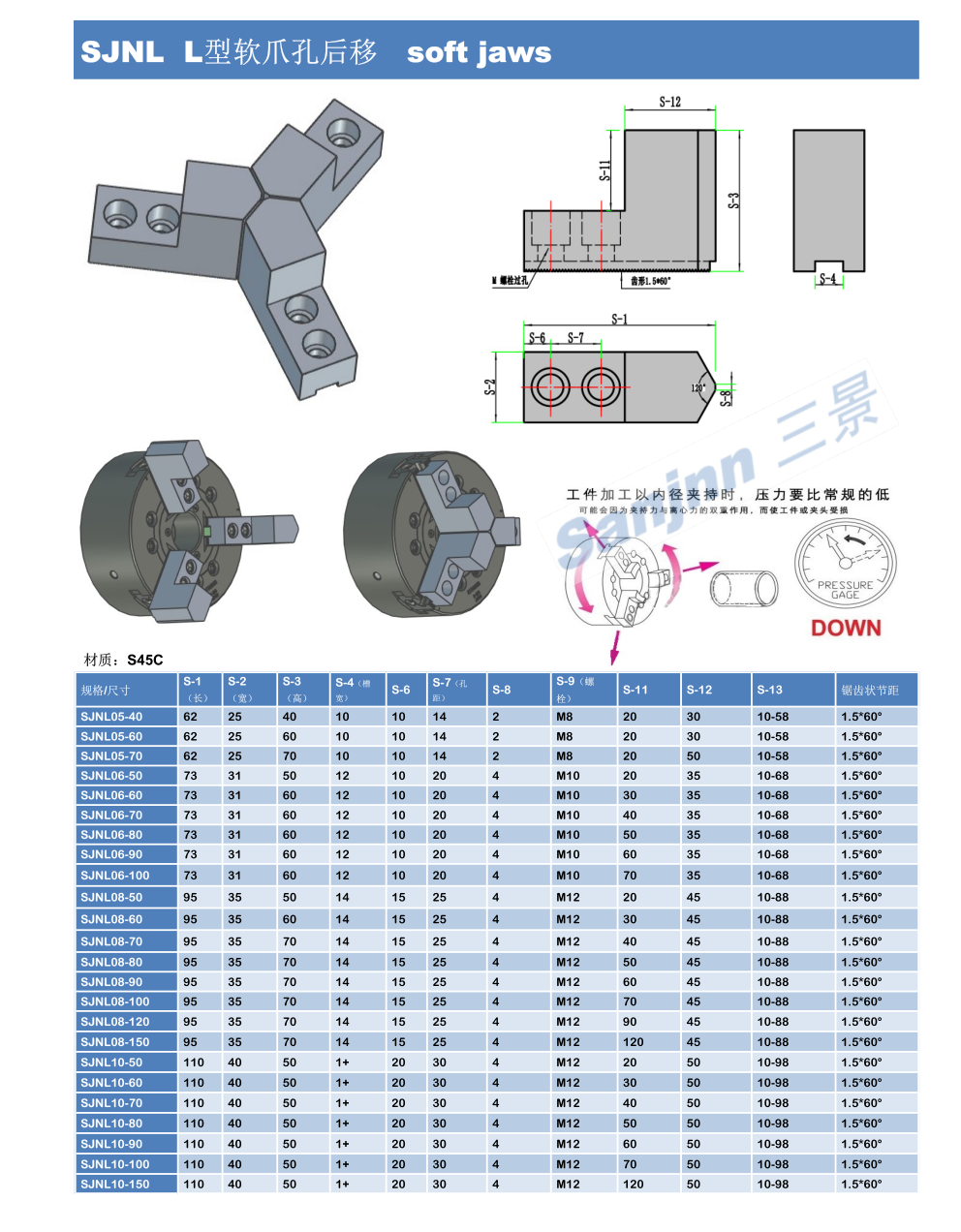 SJWL L型软爪 soft jaws