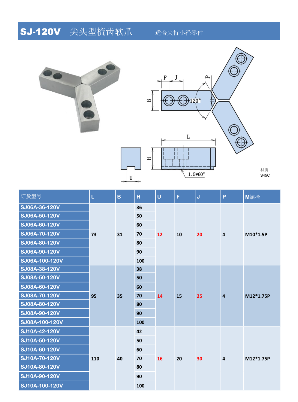 SJ-120V 尖头型梳齿软爪 适合夹持小径零件